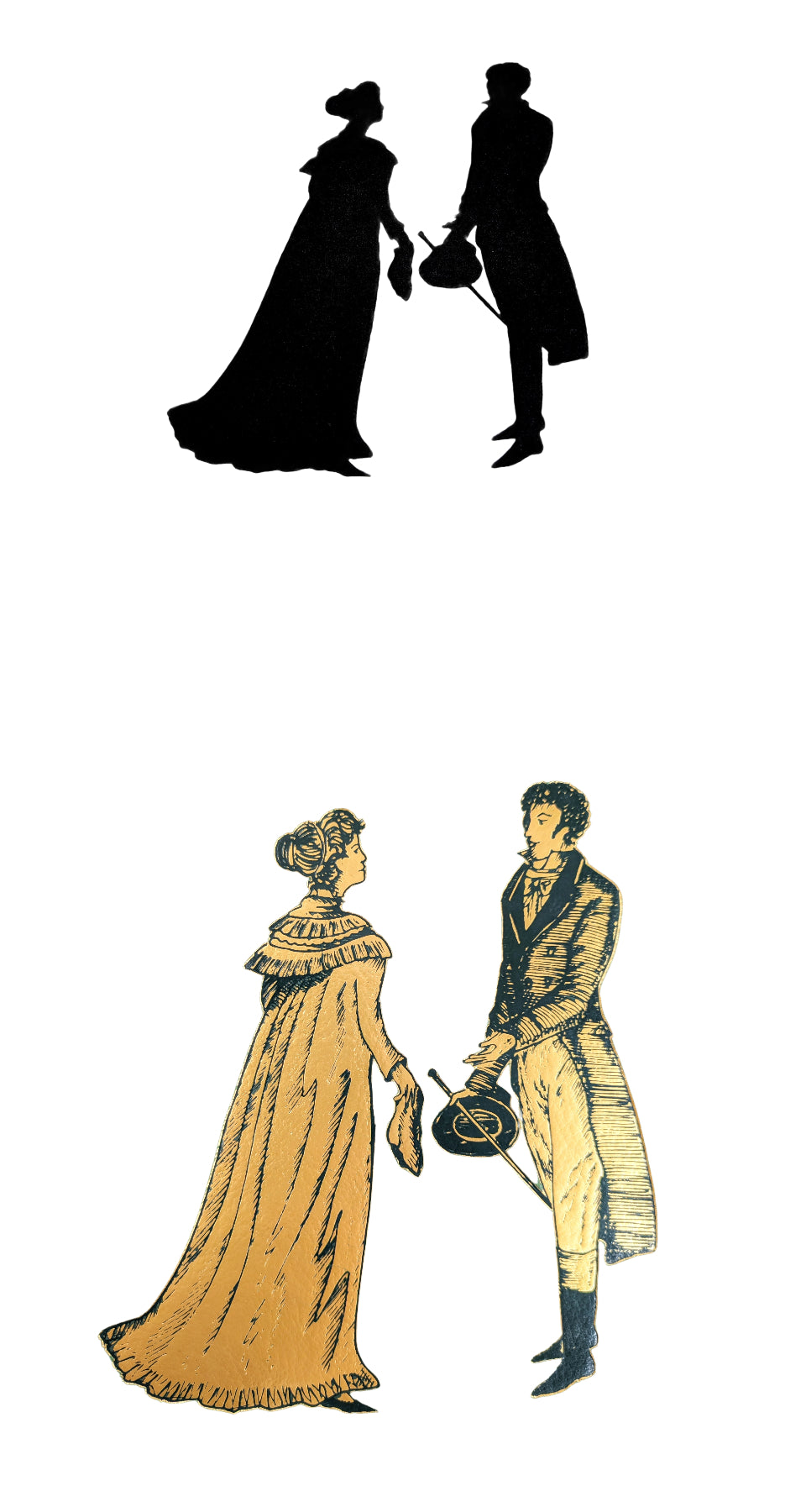 The front of the slipcase and book have beautiful gold blocked regency inspired figures, specially commissioned for this project.